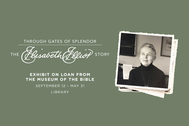 The Biola Library will host Through Gates of Splendor: The Elisabeth Elliot Story, a traveling exhibition developed in collaboration with the and The . The exhibit explores the life and legacy of Elisabeth Elliot, focusing on her faith and resilience following the death of her husband during missionary work in Ecuador.
